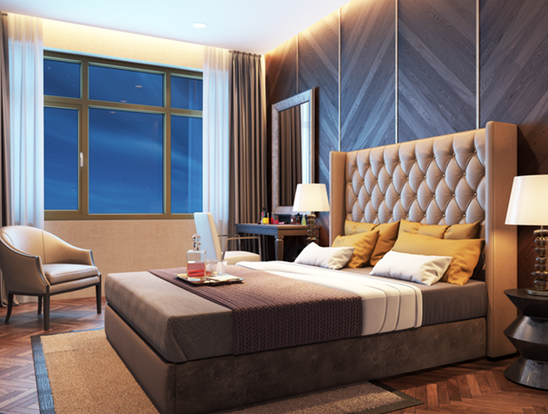 Các phòng ngủ trong mỗi căn hộ đều có cửa sổ lớn, hướng ra không gian ngoài trời đón ánh sáng, gió tự nhiên giúp căn hộ luôn thông thoáng, mát mẻ.